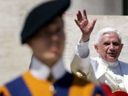 Un miembro de la Guardia Suiza, con el papa Benedicto XVI al fondo