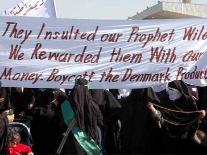 Mujeres piden el boicoteo a los productos daneses ante la sede de la ONU en Saná, capital de Yemen