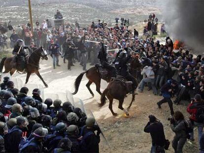 La policía israelí carga contra los colonos judíos del asentamiento de Amona que tratan de impedir su evacuación
