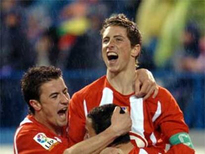Gabi (con el número 20) y Maxi abrazan a Torres tras uno de sus goles