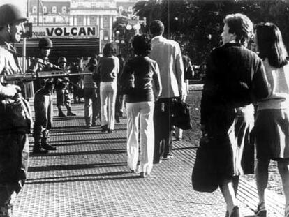 Soldados controlan el acceso a la plaza de Mayo, en Buenos Aires, en 1976