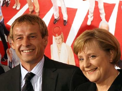 El seleccionador alemán, Jurgen Klinsmann junto a Angela Merkel