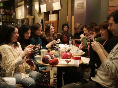 Mujeres aficionadas al ganchillo, reunidas en una cafetería de Barcelona