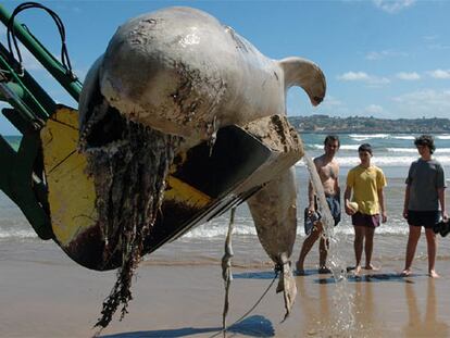 Una grúa retira el ejemplar joven de calderón común
