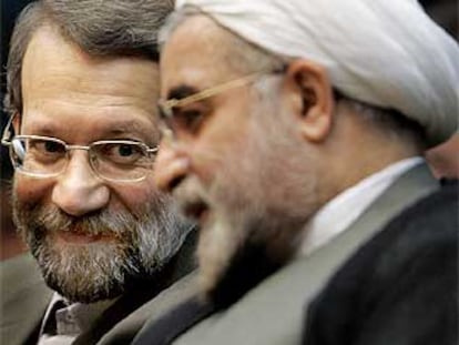 El negociador Lariyaní junto a su antecesor, Hasan Rohani