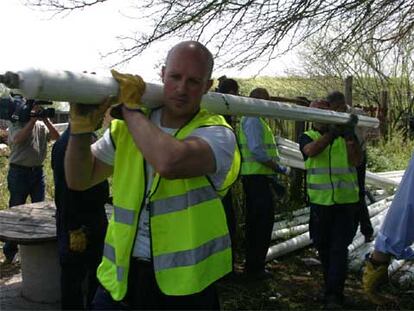 Tubos de acero hallados en una chatarrería de la barriada de Príncipe Pío, en Sevilla