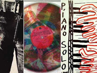 Portadas de 'Sticky Fingers', de los Rolling Stones, por Andy Warhol; 'Speaking in tongues', de los Talking Heads, por R. Rauschenberg, y 'Piano Solo', por A. R. Penck