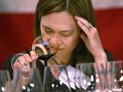 Una 'sommelier' huele un vino durante el 30º aniversario del 'Juicio de París'