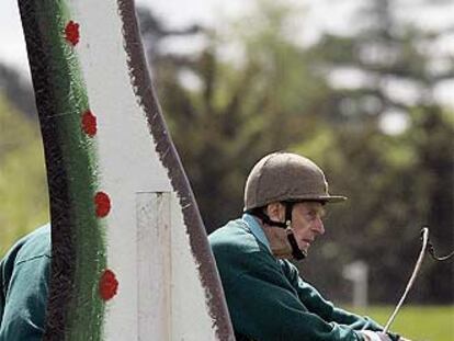 El duque de Edimburgo, en una carrera de carros de caballos, tras el muñeco 'Nessie'