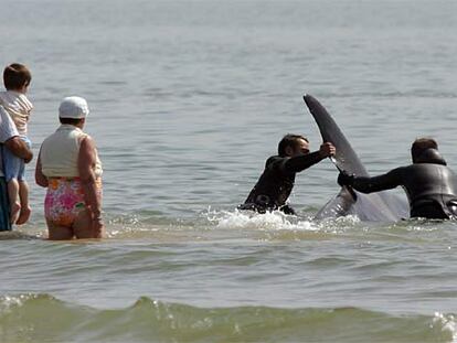 Muere en Cádiz la orca que permanecía varada en aguas de la bahía desde el sábado