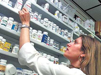Una farmacéutica repone un antibiótico en las estanterías