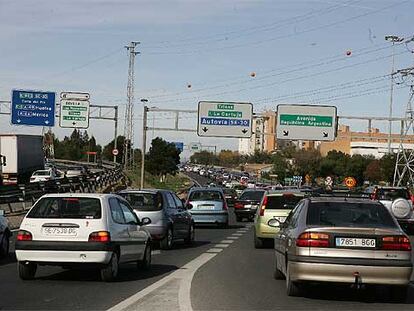 Atasco en la ronda de circunvalación SE-30, en Sevilla.