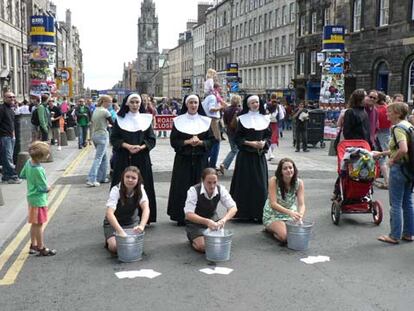 En una calle de Edimburgo, unas monjas anuncian <i>Breaking the Pope,</i>