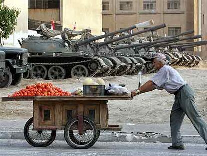 Fila de tanques en la ciudad libanesa de Tiro