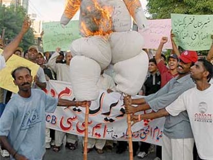 Aficionados paquistaníes queman un muñeco que simboliza a Hair.