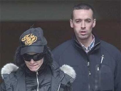 Madonna, acompañada por un guardaespaldas, en su hotel moscovita