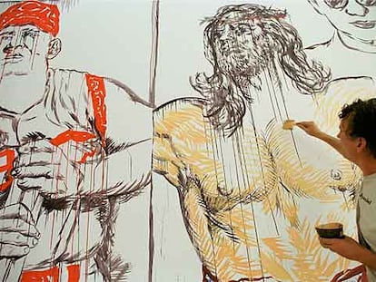Raymond Pettibon, pintando uno de sus murales