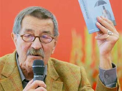 Günter Grass sostiene uno de los libros de Amitav Ghosh