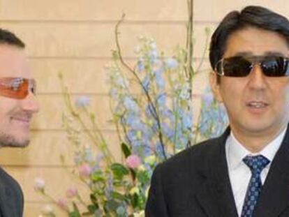 El primer ministro de Japón se pone las modernas gafas de marca solidaria RED impulsada por el cantante de U2