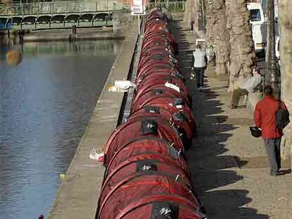Tiendas de campaña montadas junto al canal Saint-Martin de París