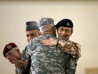 Relevo entre el general británico Richards (de frente) y el estadounidense McNeill