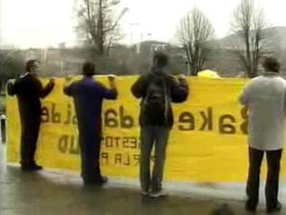 La coordinadora "Gesto por la Paz" se ha concentrado hoy en Bilbao para rechazar la violencia callejera y denunciar la muerte del anciano Ambrosio Fernández en Arrasate como consecuencia de la inhalación de humo en un ataque de la kale borroka.
