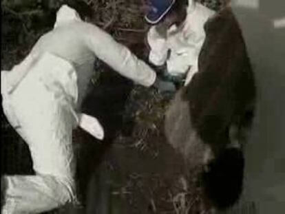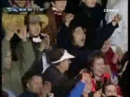 El jugador italiano golpea a Marchena, a la izquierda de la imagen, que contesta el golpe. Tras los puñetazos, los jugadores de ambos equipos intentan frenar al jugador italiano.