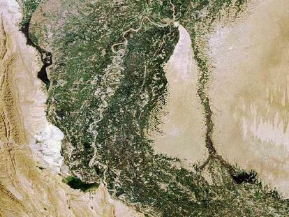 El satélite ENVISAT muestra el valle que forma el río Indo a su paso por la provincia de Sindh (Pakistán).