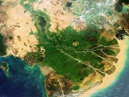 El satélite Envisat muestra la desembocadura del Mekong en tierras vietnamitas