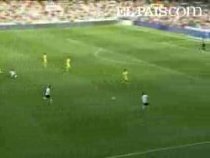El delantero sevillano recibe la pelota en el área pequeña, avanza y tira fuerte a portería. Viera, haciendo alarde de grandes reflejos, alza los brazos y despeja un disparo potentísimo de Joaquín.