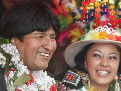 El presidente boliviano, Evo Morales, durante su participación este domingo en la fiesta folclórica de Jésús del Gran Poder en La Paz