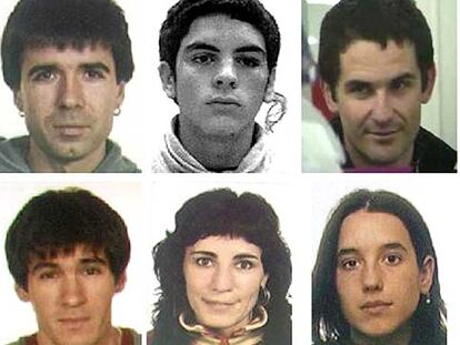 Los etarras, Aitzol Etxaburu Artetxe, Ander Mugica Andonegi, Eneko Zarrabeitia Salterain, Joseba Mikel Olza Puñal, Leire López Zurutuza y Saioa Sánchez Iturregi.