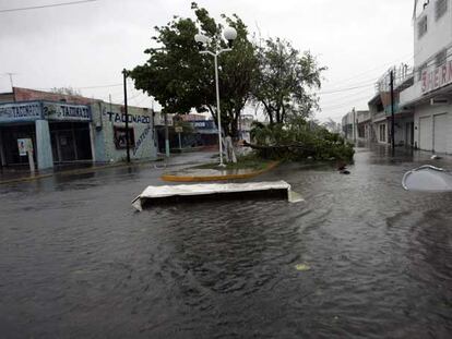 Una calle inundada en la ciudad de Chetumal