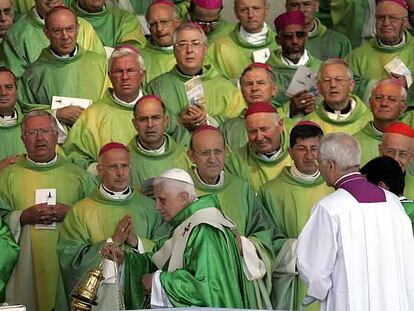 Benedicto XVI, vestido de verde, celebra la misa en Loreto