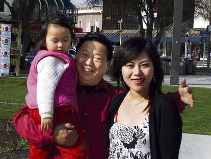 La niña Qian Xun Xue, con sus padres