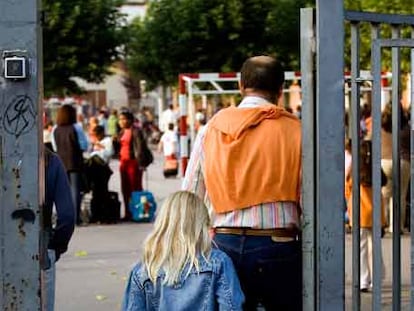 Una niña entra en su colegio en el centro de Vitoria