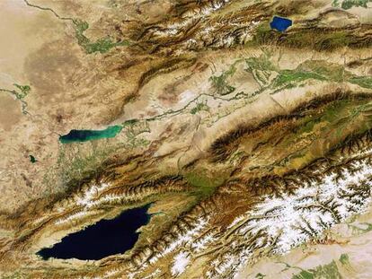El Envisat ha recogido una imagen que muestra varios de los lagos situados en el sureste de la República de Kazakhstán y en el noreste de Kirguistán.