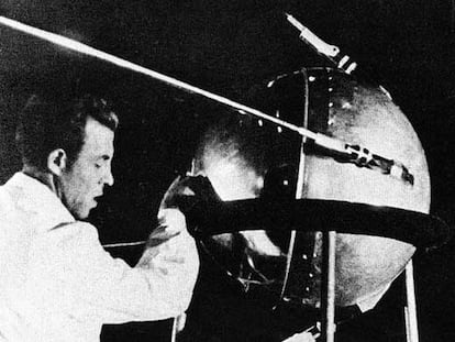 Un técnico trabajando en el 'Sputnik 1'