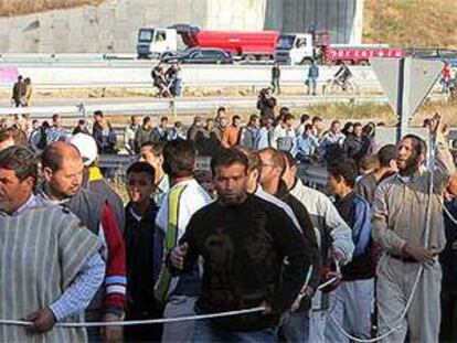 Vecinos de la Cañada Real protestan ante la Junta Municipal por el derribo de una casa pero nadie les recibe por carecer de cita previa.- Los choques con la policía de ayer se saldaron con 41 heridos