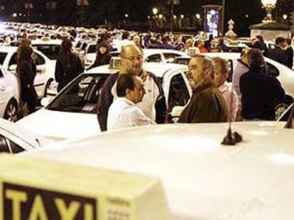 Los coches ocupan parte del eje Paseo del Prado-Recoletos y de Alcalá-Gran Vía. - Los conductores piden más seguridad y piensan prolongar la huelga espontánea hasta las doce del sábado