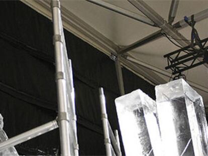 Más de 50 artistas trabajan a 12 grados bajo cero para esculpir los monumentos de Madrid y motivos navideños