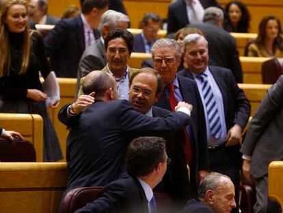 Daniel Sirera recibe la felicitación del portavoz del PP en el Senado