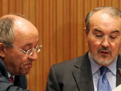 Miguel Ángel Fernández Ordóñez, junto a Pedro Solbes