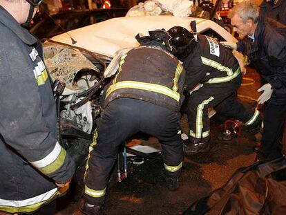Los bomberos tratan de rescatar los cuerpos del matrimonio fallecido