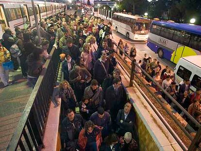 Viajeros de Renfe hacen transbordo para continuar el viaje en autobús
