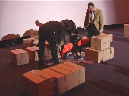 Las dos únicas perras del mundo que son capaces de detectar CD y DVD exhiben sus habilidades en España