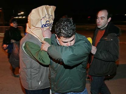 Victoriano Ceballos acompañado por su hijo, tras salir de la cárcel