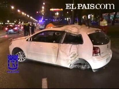 Un joven choca con su coche contra una farola en el Paseo de la Castellana