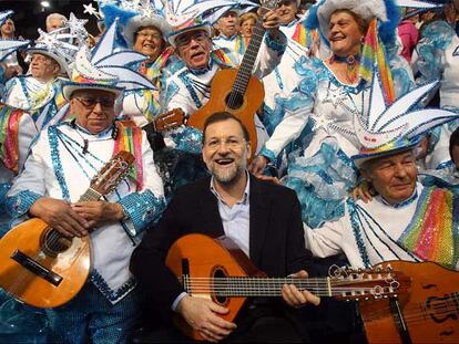Rajoy posa con una rondalla de carnaval de La Laguna