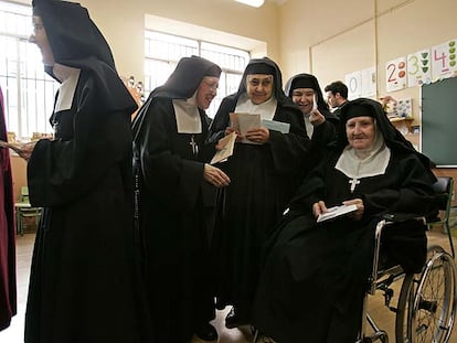 Varias monjas esperan su turno para votar